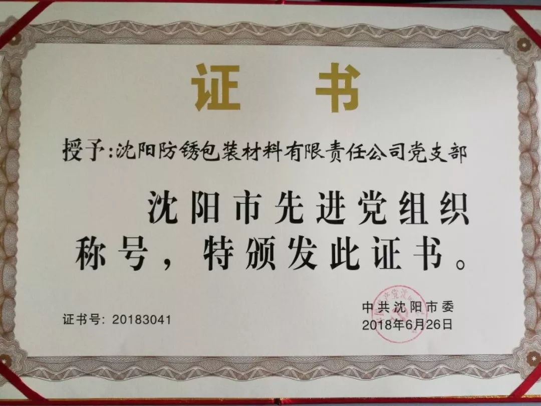 The commendation of the advanced party organization is an affirmation of Shenyang's anti-rust, "advance with the party", advanced learning, advanced and advanced, and also a commendation for the company's reform and innovation, courage to open up, and maintain advanced thinking. Shenyang anti-rust always adheres to scientific and technological innovation, market-oriented, and constantly research and develop new technologies to maintain the advanced technology. In terms of product innovation, priority is given to safer and more environmentally friendly raw materials, even food-grade materials. The ultimate goal is to provide customers with peace of mind and safer environment. Service innovation, breaking the traditional concept of the industry, the industry's first public technology service platform. Let more companies benefit.