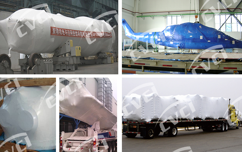 用氣相防銹熱收縮膜封存大型裝備,采用片狀膜現(xiàn)場拼接方式將裝備整體包裝上,然后進行熱收縮操作,將氣相防銹熱收縮膜緊貼在裝備上。器材封存時,將氣相防銹熱收縮膜做成包裝袋,將器材裝入袋內(nèi),然后進行熱收縮操作,收縮程度以氣相防銹熱收縮膜緊貼在零配件上即可。封存的金屬表面不應(yīng)有殘留的汗液、水膜、酸堿或其他污物, 不得帶有銹蝕。