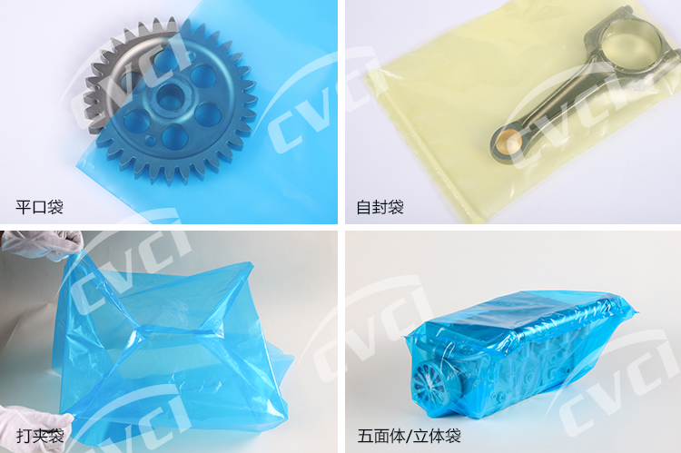氣相防銹塑料薄膜以聚烯烴類樹脂為基材,加入揮發(fā)性緩蝕劑(VCI),經(jīng)過(guò)一些列工藝制成。氣相防銹膜在實(shí)際應(yīng)用中主要以袋狀或片狀形式呈現(xiàn)(詳見產(chǎn)品狀態(tài)),包裝保護(hù)客戶的產(chǎn)品,集防銹與包裝功能為一體。我們膜的厚度、顏色、尺寸及形式根據(jù)客戶實(shí)際需求進(jìn)行定制化、個(gè)性化生產(chǎn)。 鋼用氣相防銹膜保護(hù)的金屬主要為碳鋼、合金鋼、粉末冶金、鑄鐵、鑄鋼等材質(zhì)。