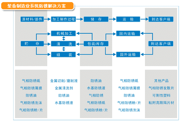 裝備制造業(yè)從原材料貯存,到加工制造、裝配、運輸,每一個環(huán)節(jié)都會面臨銹蝕問題。該領域?qū)τ诜冷P產(chǎn)品具有需求范圍廣、個性化要求高、技術(shù)支持需求明顯等特點。我們按客戶材質(zhì)、工藝和儲運要求,進行系統(tǒng)的防銹防護解決方案。已成功完成小到微型電機、大至成套工程機械的防銹防護方案設計和多年驗證工作。為我國裝備制造業(yè)發(fā)展保駕護航!